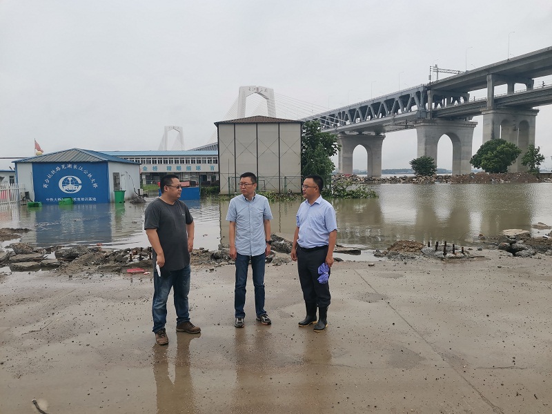沿著長江防洪大堤,方曉同志一邊檢查一邊聽取項目施工單位防汛工作匯報。目前,施工單位中鐵大橋局項目人員已有序撤離危險區(qū)域、工程資料已經(jīng)妥善安置,并與屬地政府、所在街道組成防汛值班隊伍,安排人員24小時現(xiàn)場值班,并組建了一支50人的突擊分隊隨時應(yīng)對突發(fā)險情。